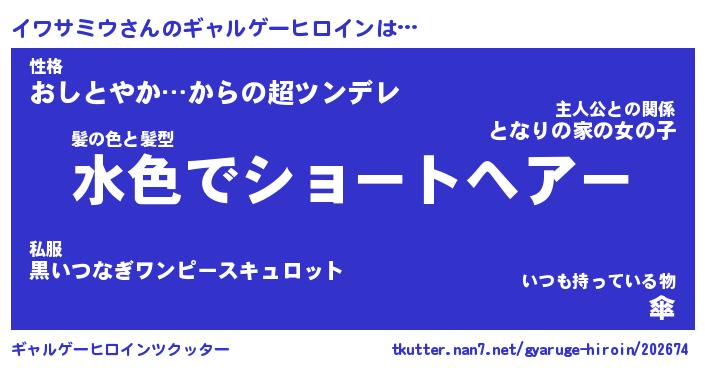 | ファンタジー風あだ名 | 『イワフェル』『エターナルイワサミウー』 |