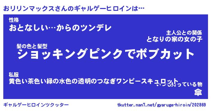 | 女子向けラノベタイトル風あだ名 | 『(仮)おリリンマックスのやんごとなき事情』 |