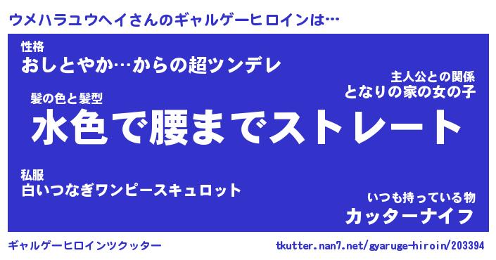 | ヘコむあだ名 | 『ウメにゅー』『つくし』『ウメっ子』 |