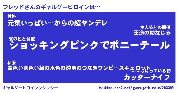 | ファンタジー風あだ名 | 『フレフェル』『エターナルフレッドー』 |