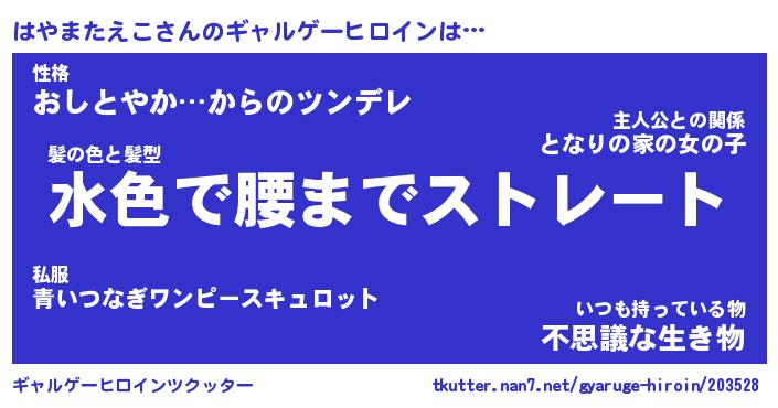 | 女子向けラノベタイトル風あだ名 | 『(仮)はやまたえこのやんごとなき事情』 |