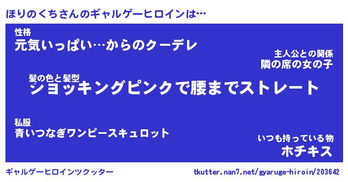 | 女子向けラノベタイトル風あだ名 | 『(仮)ほりのくちのやんごとなき事情』 |