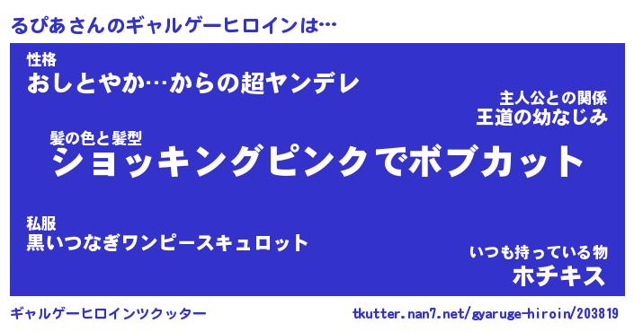 | ポケモン風あだ名 | 『ルピチュウ』『ルピアダネ』 |
