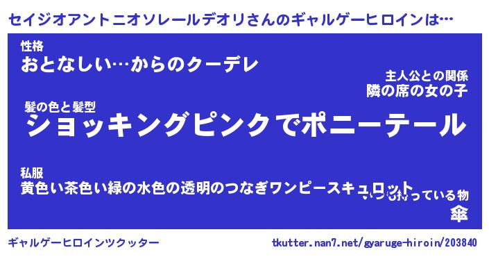 | 男性向けラノベタイトル風あだ名 | 『セイジオアントニオソレールデオリの憂鬱』 |
