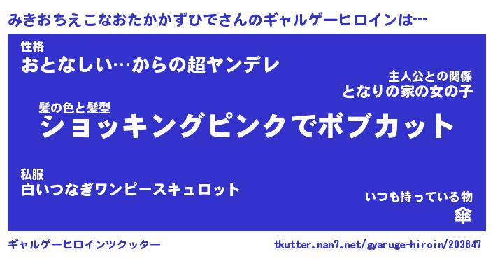 | 女子向けラノベタイトル風あだ名 | 『(仮)みきおちえこなおたかかずひでのやんごとなき事情』 |