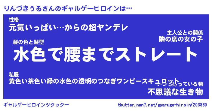 | 男性向けラノベタイトル風あだ名 | 『りんづきうるの憂鬱』 |