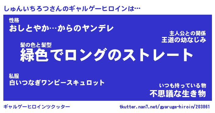 | ヘコむあだ名 | 『しゅにー』『つくし』『しゅを』 |