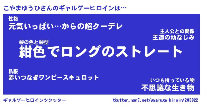 | ヒーロー風カッコイイあだ名 | 『スーパーコヤマユウヒ』『天弓騎士コヤ』 |