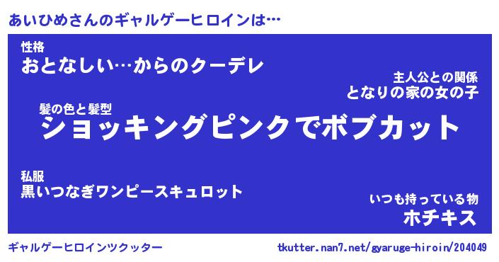 | 女子向けラノベタイトル風あだ名 | 『(仮)あいひめのやんごとなき事情』 |