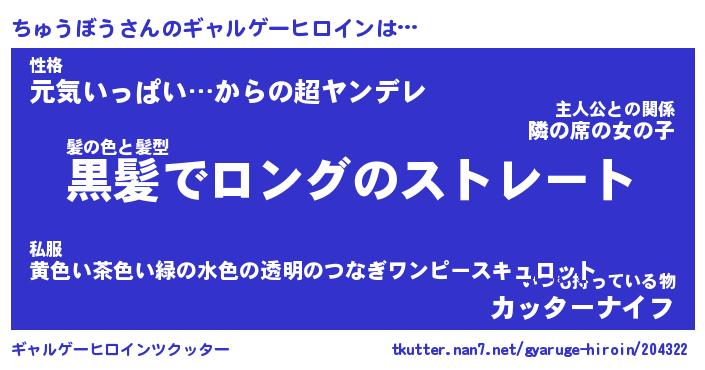 | ファンタジー風あだ名 | 『チュフェル』『エターナルチュウボウー』 |