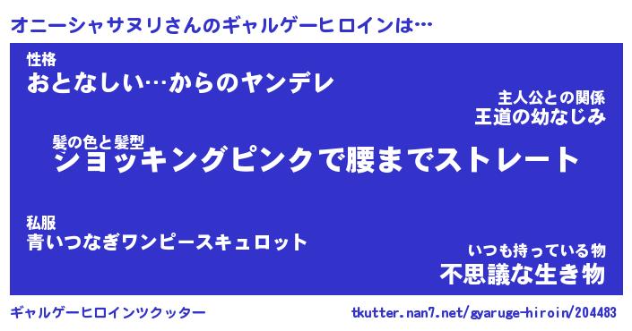 | 女子向けラノベタイトル風あだ名 | 『(仮)オニーシャサヌリのやんごとなき事情』 |