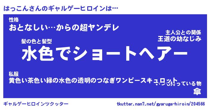| 男性向けラノベタイトル風あだ名 | 『はっこんの憂鬱』 |