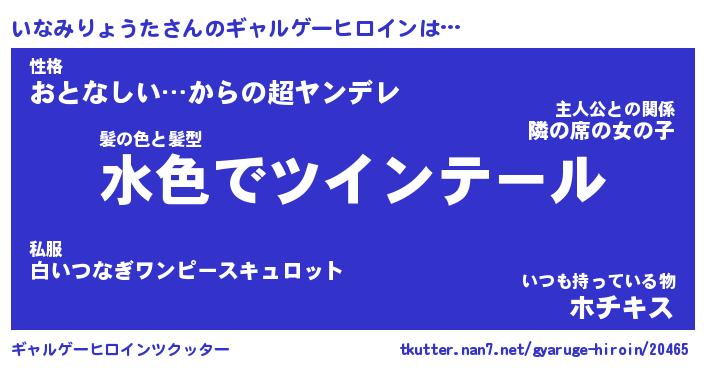 | 男性向けラノベタイトル風あだ名 | 『いなみりょうたの憂鬱』 |