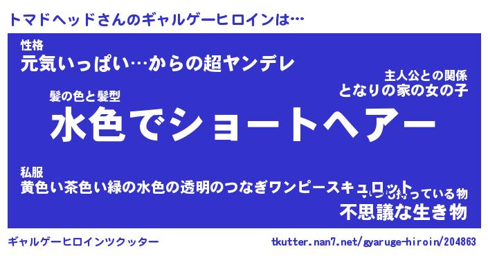 | 男性向けラノベタイトル風あだ名 | 『トマドヘッドの憂鬱』 |