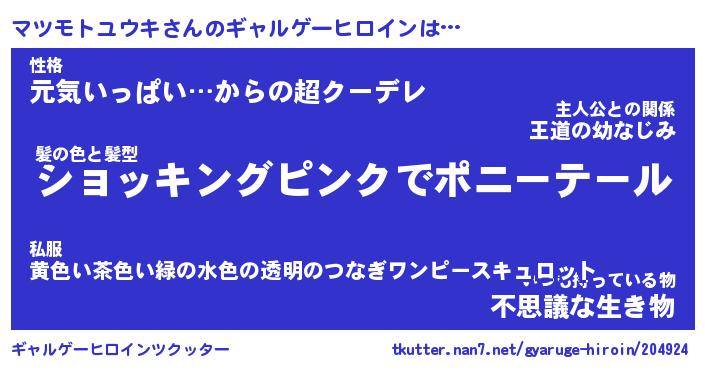 | 男性向けラノベタイトル風あだ名 | 『マツモトユウキの憂鬱』 |