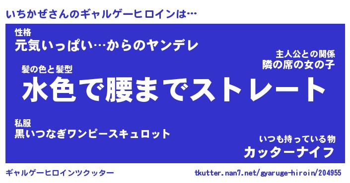 | 男性向けラノベタイトル風あだ名 | 『いちかぜの憂鬱』 |