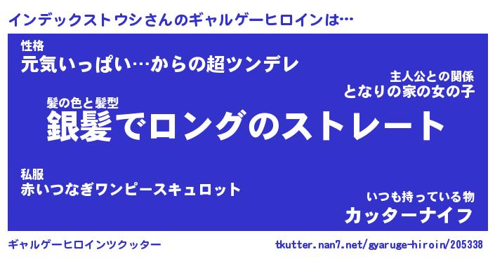 | 男性向けラノベタイトル風あだ名 | 『インデックストウシの憂鬱』 |