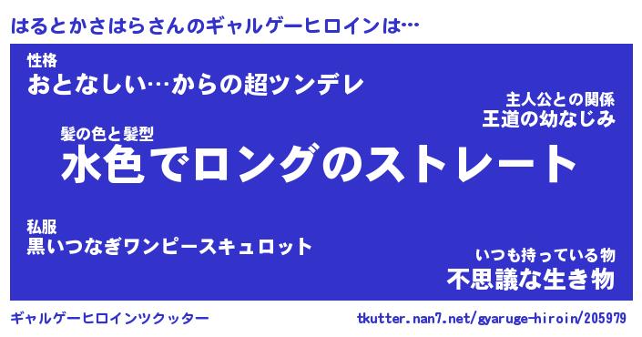 | 男性向けラノベタイトル風あだ名 | 『はるとかさはらの憂鬱』 |