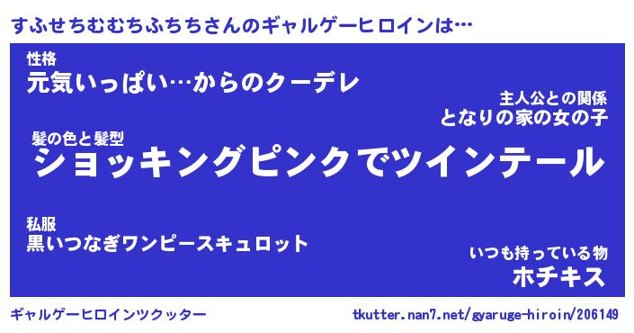 | 男性向けラノベタイトル風あだ名 | 『すふせちむむちふちちの憂鬱』 |