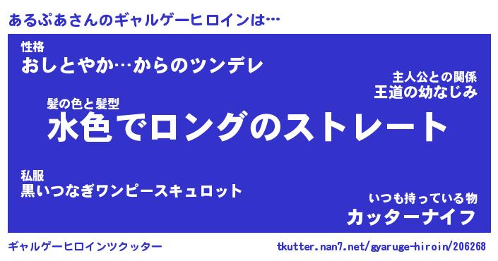 | 男性向けラノベタイトル風あだ名 | 『あるぷあの憂鬱』 |