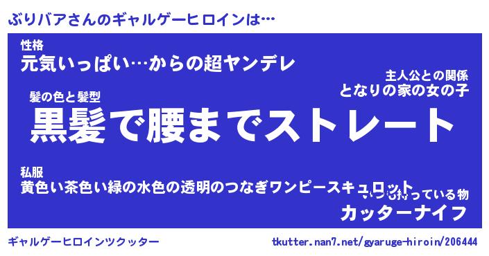 | 女子向けラノベタイトル風あだ名 | 『(仮)ぶりバアのやんごとなき事情』 |