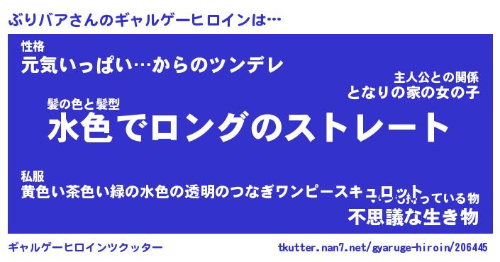 | 女子向けラノベタイトル風あだ名 | 『(仮)ぶりバアのやんごとなき事情』 |