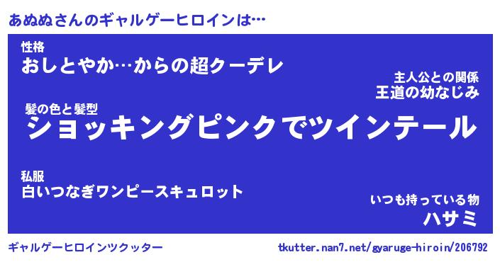 | ファンタジー風あだ名 | 『アヌフェル』『エターナルアヌヌー』 |