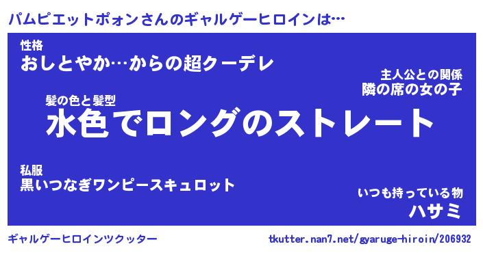 | 男性向けラノベタイトル風あだ名 | 『パムピエットポォンの憂鬱』 |