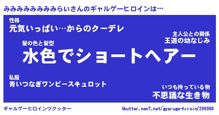 女子向けラノベタイトル風あだ名 | 『(仮)みみみみみみみみらいのやんごとなき事情』 |
