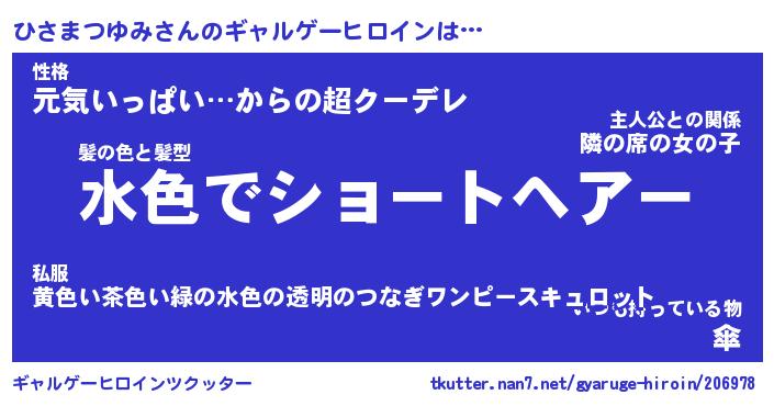 | 肩書あだ名 | 『ひさまつゆみ社長』『ひさまつゆみ班長』 |