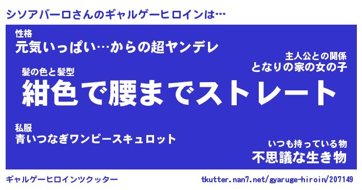| 男性向けラノベタイトル風あだ名 | 『シソアバーロアートオンライン』 |
