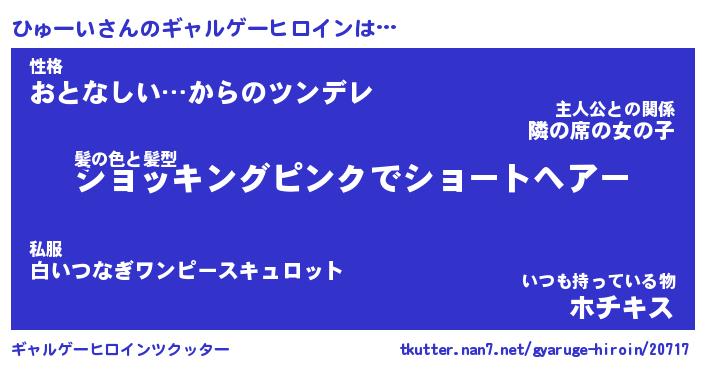 | 女子向けラノベタイトル風あだ名 | 『(仮)ひゅーいのやんごとなき事情』 |