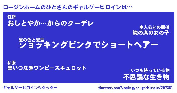 | 女子向けラノベタイトル風あだ名 | 『(仮)ロージンホームのひとのやんごとなき事情』 |