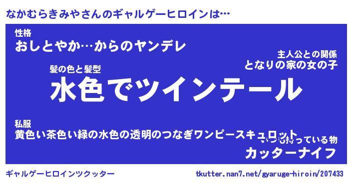 | 伝説のあだ名 | 『伝説の竜騎士なかむらきみや』 |