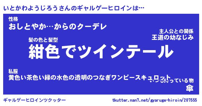 | 女子向けラノベタイトル風あだ名 | 『誰かこのいとかわようじろうを説明してください! ~契約から始まるウェディング~』 |