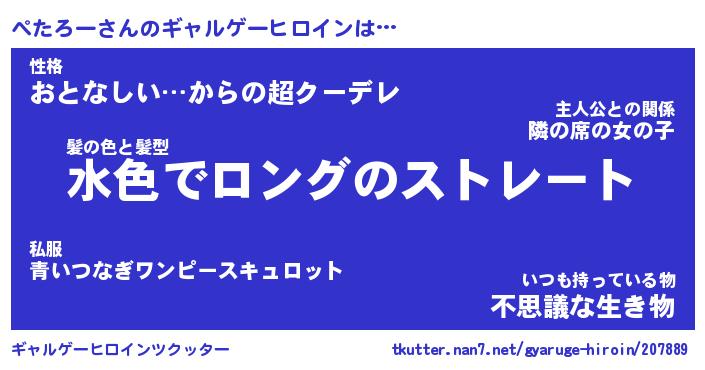 | 意味不明あだ名 | 『ペロリンぺたろー』『永久保存ぺたろー』 |