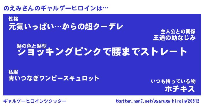 | 女子向けラノベタイトル風あだ名 | 『(仮)のえみのやんごとなき事情』 |