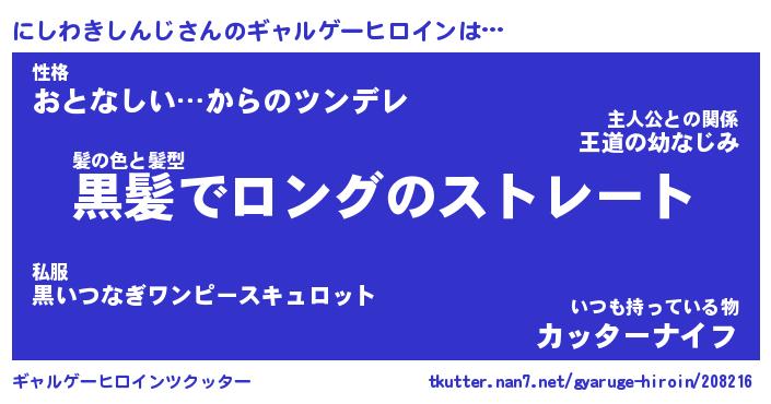| 女子向けラノベタイトル風あだ名 | 『にしわきしんじ姫と円卓の騎士』 |