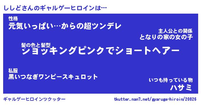 | ヘコむあだ名 | 『ししもー』『なまこ酢』『ししを』 |