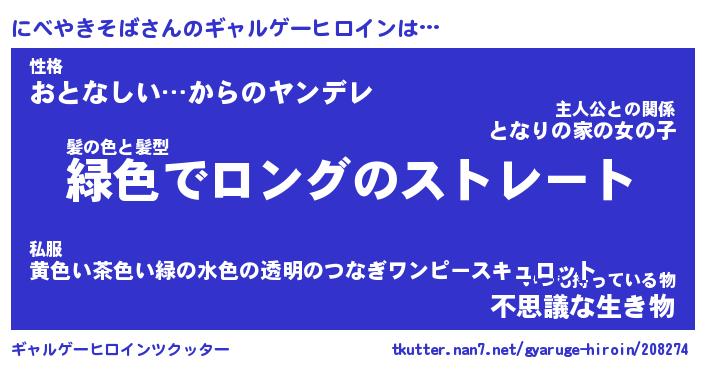 | ヘコむあだ名 | 『にべにゅー』『レバニラ』 |