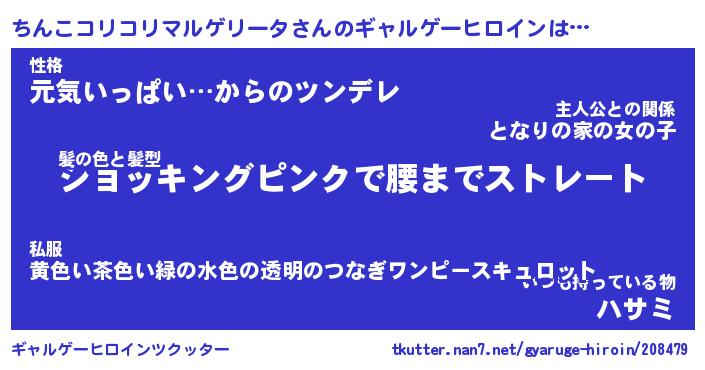 | 男性向けラノベタイトル風あだ名 | 『ちんこコリコリマルゲリータの憂鬱』 |