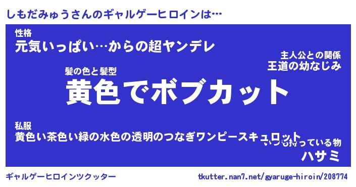 | ヒーロー風カッコイイあだ名 | 『スーパーシモダミュウ』『幻影騎士シモ』 |