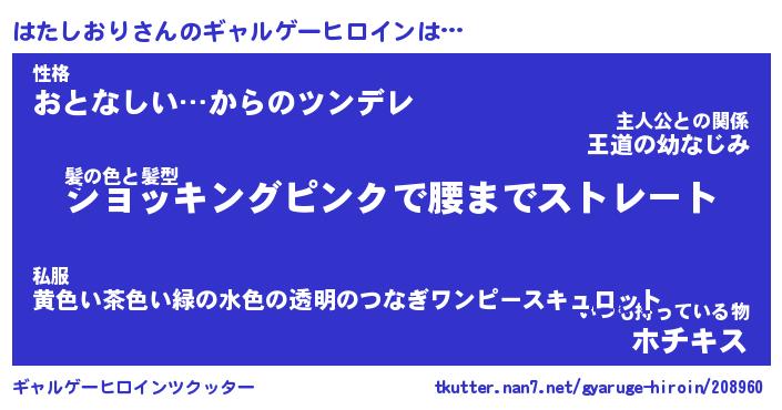 | 女子向けラノベタイトル風あだ名 | 『(仮)はたしおりのやんごとなき事情』 |
