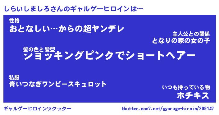 | 伝説のあだ名 | 『伝説の竜騎士しらいしましろ』 |