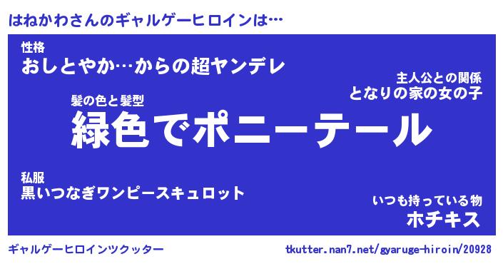 | ファンタジー風あだ名 | 『ハネフェル』『エターナルハネカワー』 |