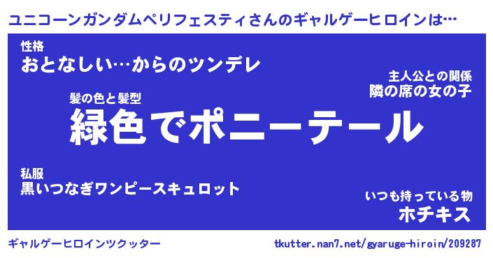 | 意味不明あだ名 | 『ペロリンユニコーンガンダムペリフェスティ』 |