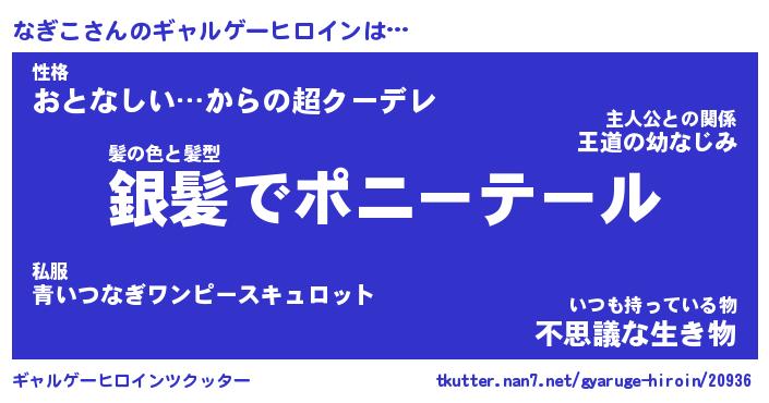 | 男性向けラノベタイトル風あだ名 | 『ナギコアートオンライン』 |