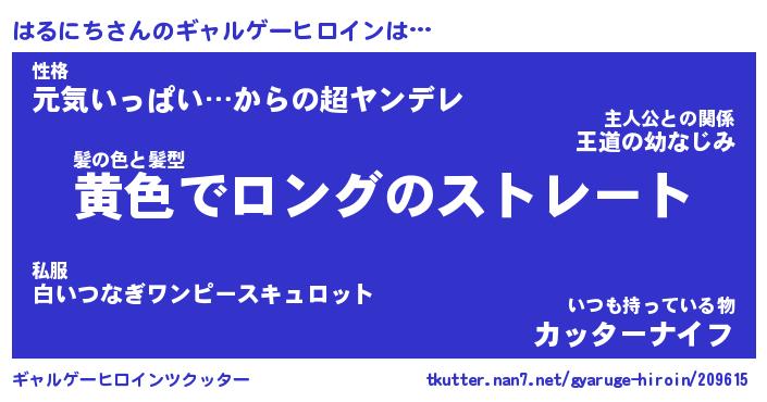 | 男性向けラノベタイトル風あだ名 | 『ハルニチアートオンライン』 |