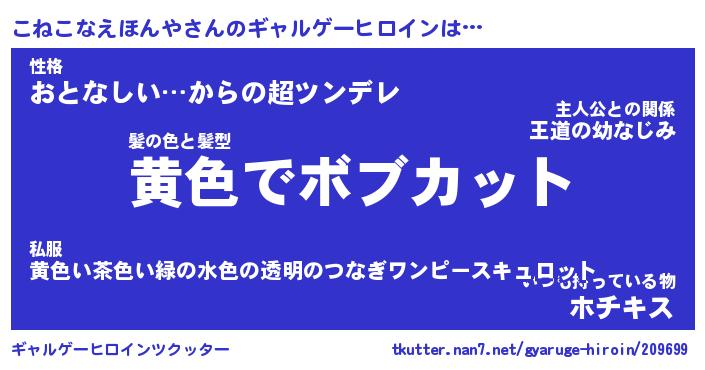 | 男性向けラノベタイトル風あだ名 | 『コネコナエホンヤアートオンライン』 |