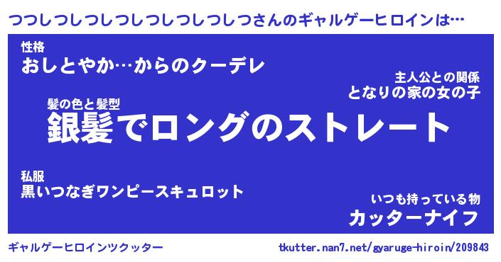 | 女子向けラノベタイトル風あだ名 | 『つつしつしつしつしつしつしつしつ姫と円卓の騎士』 |
